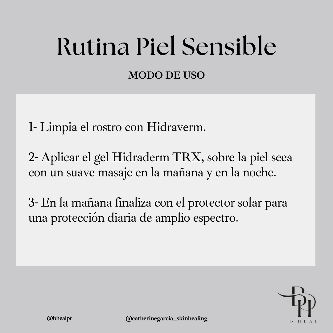 • Hidraderm TRX (AM/PM) – 5 tipos de ácido hialurónico y ácido tranexámico para desinflamar, renovar y proteger la piel.